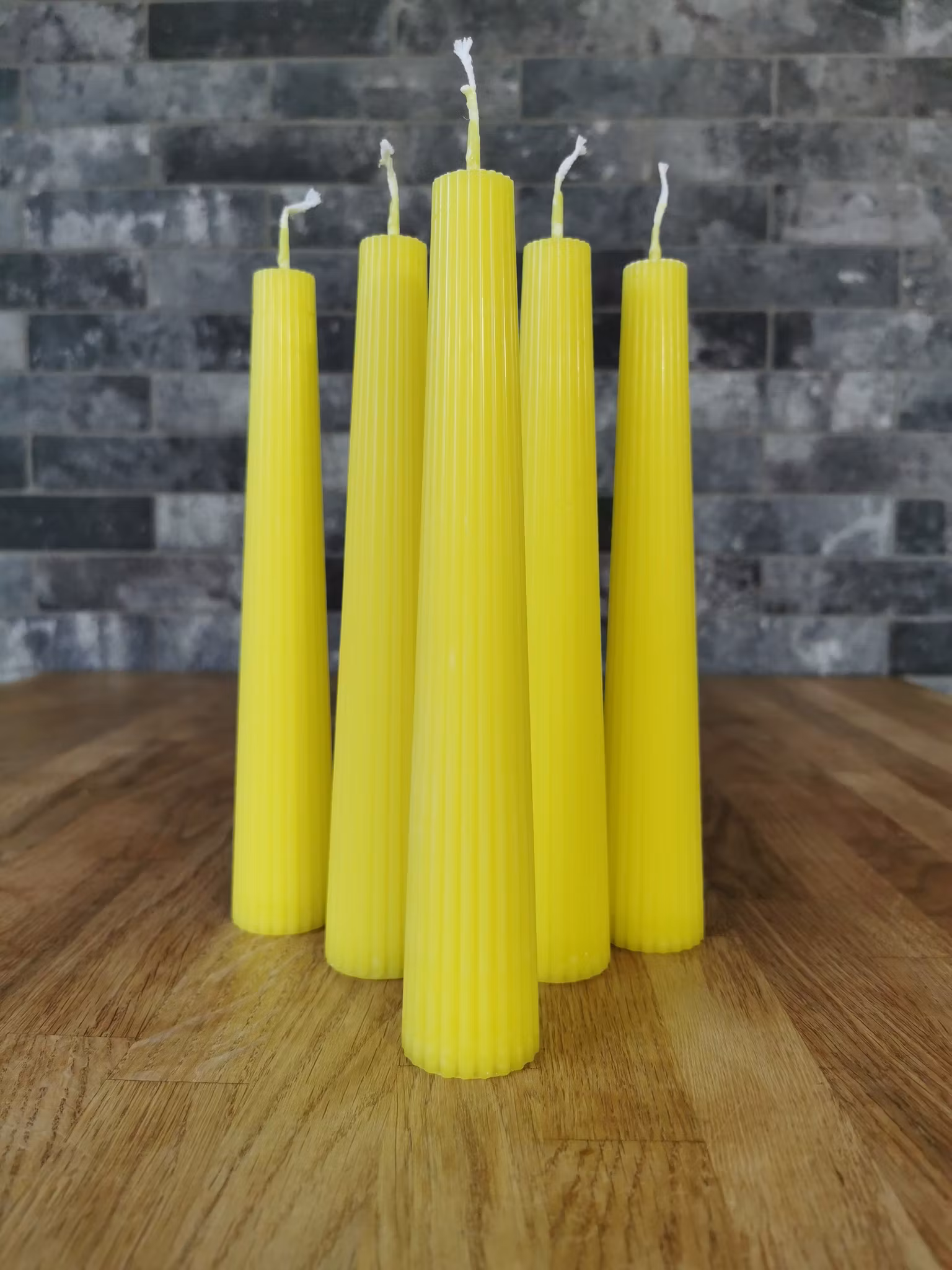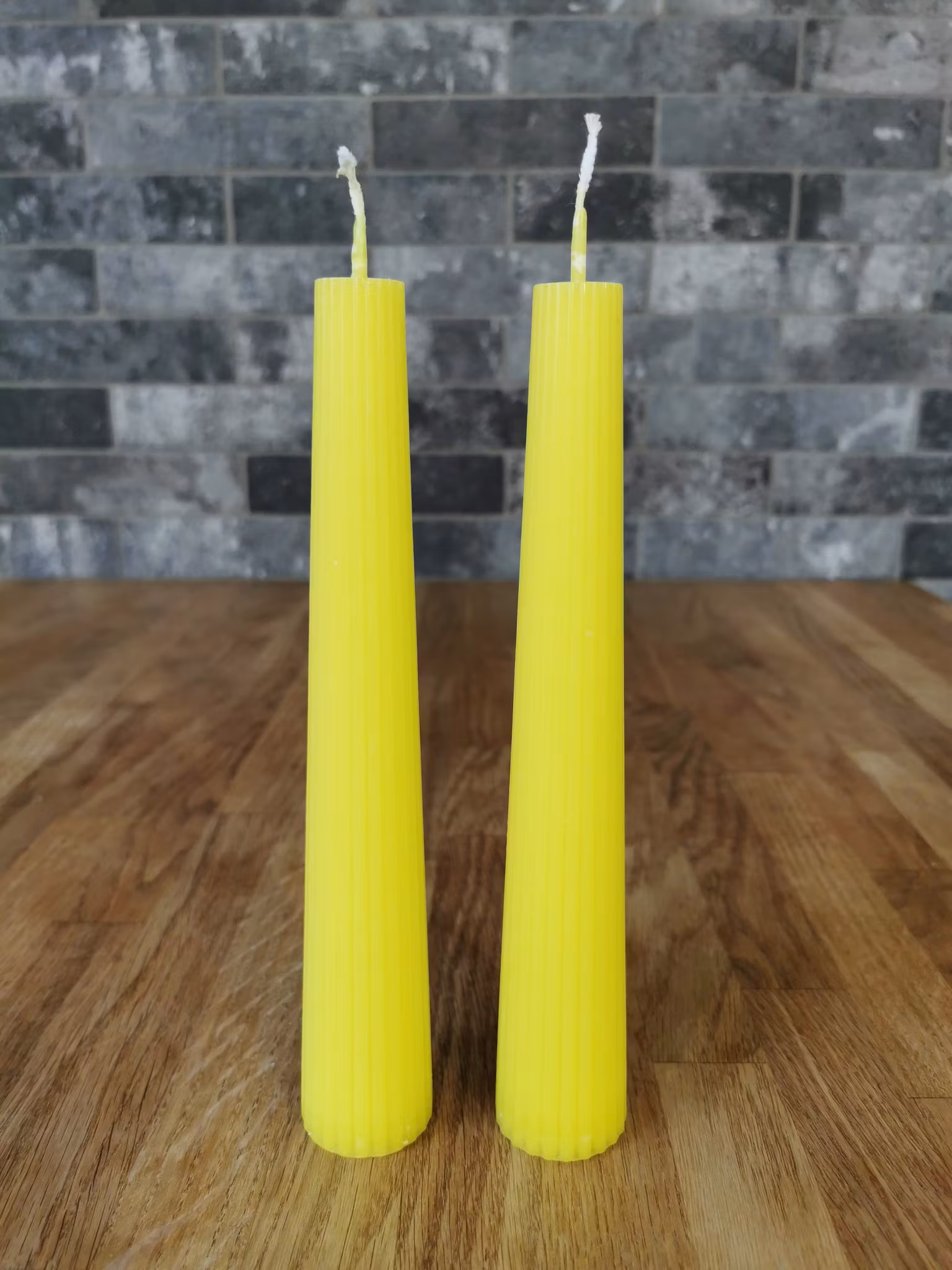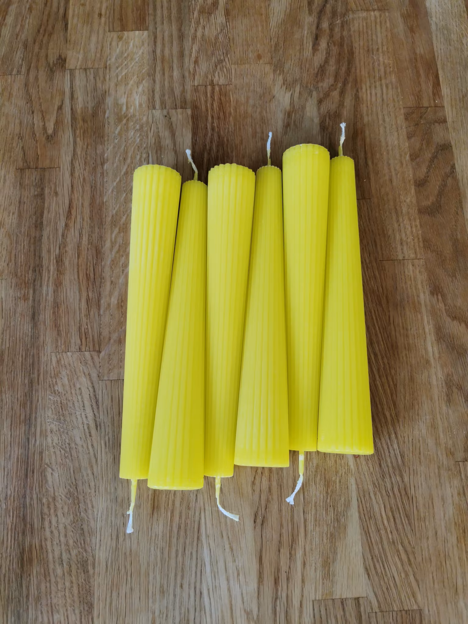 Detta handgjorda påskljus av naturlig stearin blir ett vackert tillskott till din festliga dekoration. Ljuset är utformat som en ljusgul pelare med eleganta räfflor som ger det en unik och stilfull look.