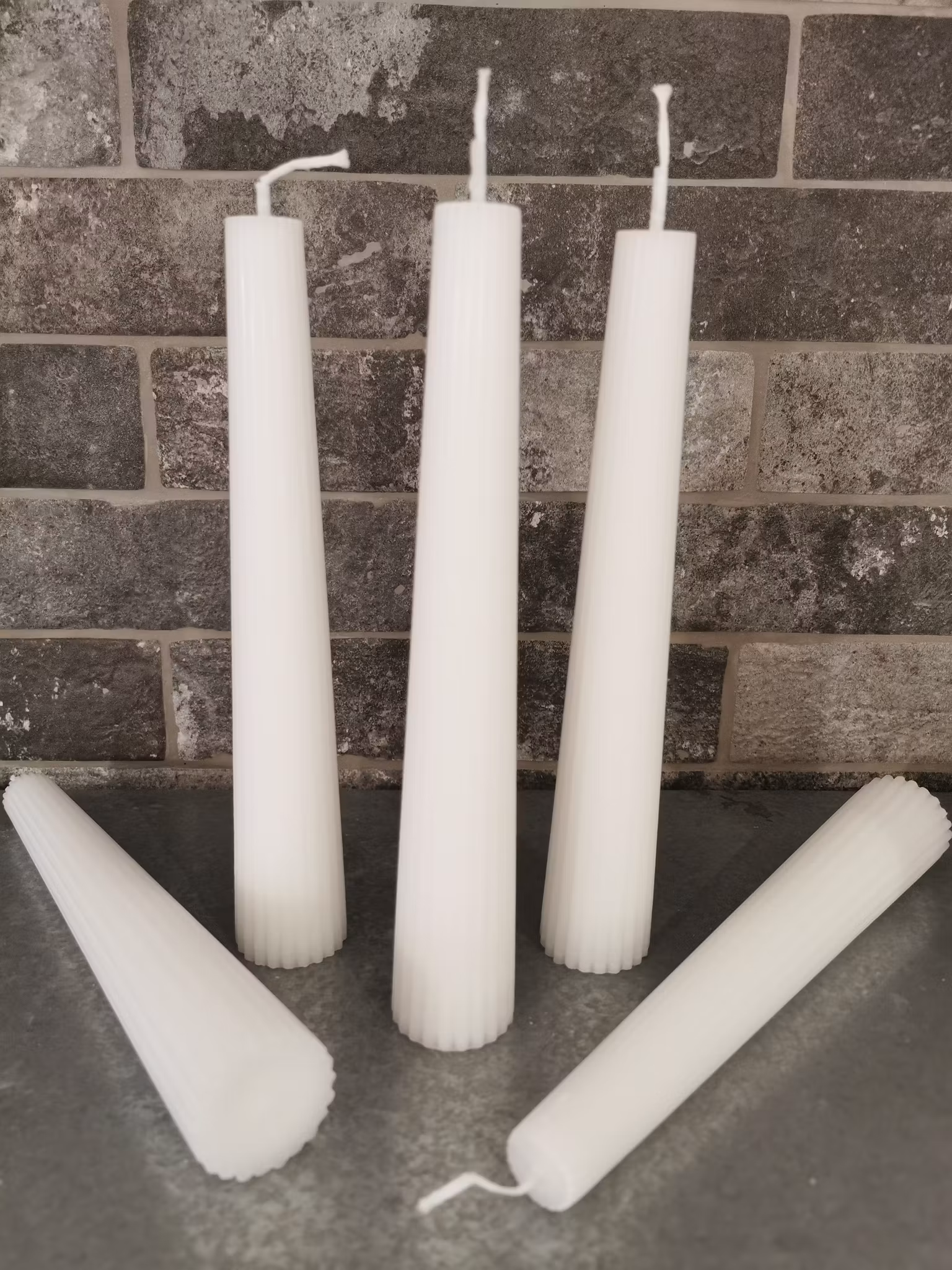 Handgjort ljus av 100% stearin i form av en pelare med räfflor.