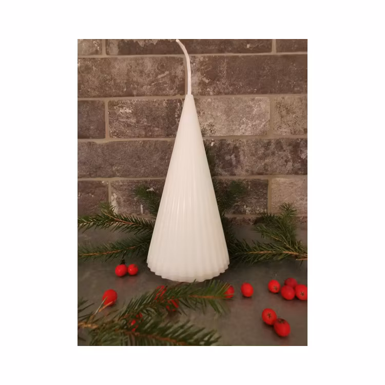Handgjort ljus av 100% stearin i form av ett pyramid med räfflor.