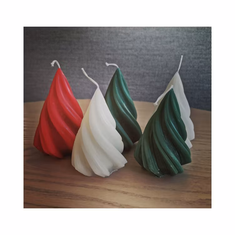 Handgjord ljus av 100% stearin i form av kon i form av en spiral.