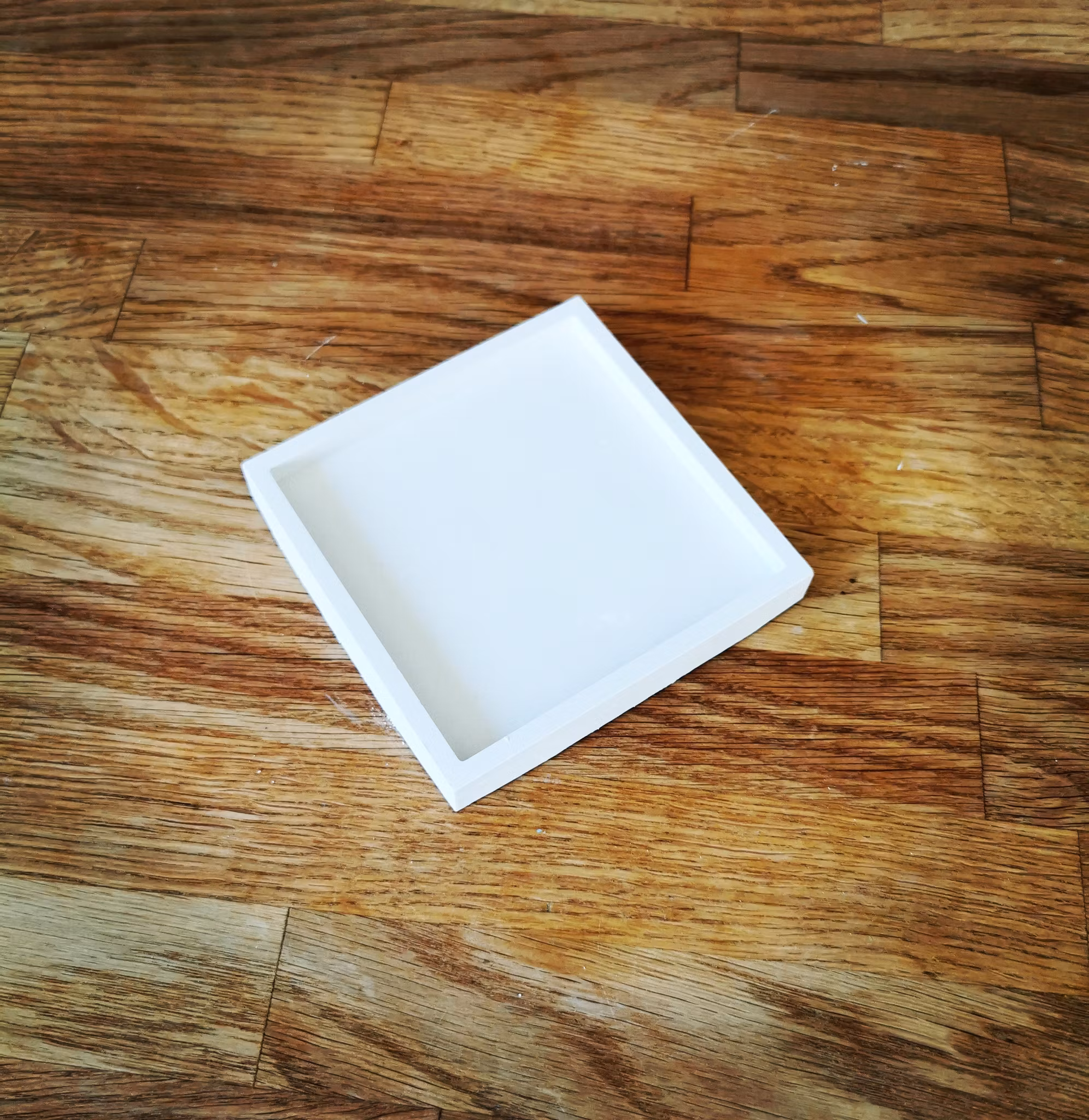 Denna ljusfat i fyrkantig form är handgjord av gips, vilket ger den en speciell charm och individualitet.