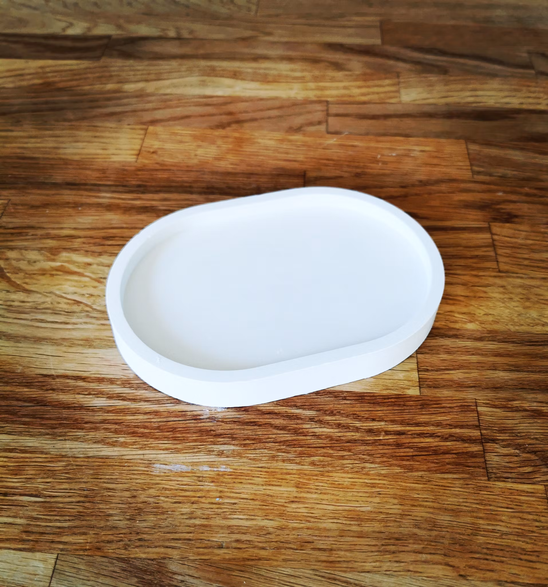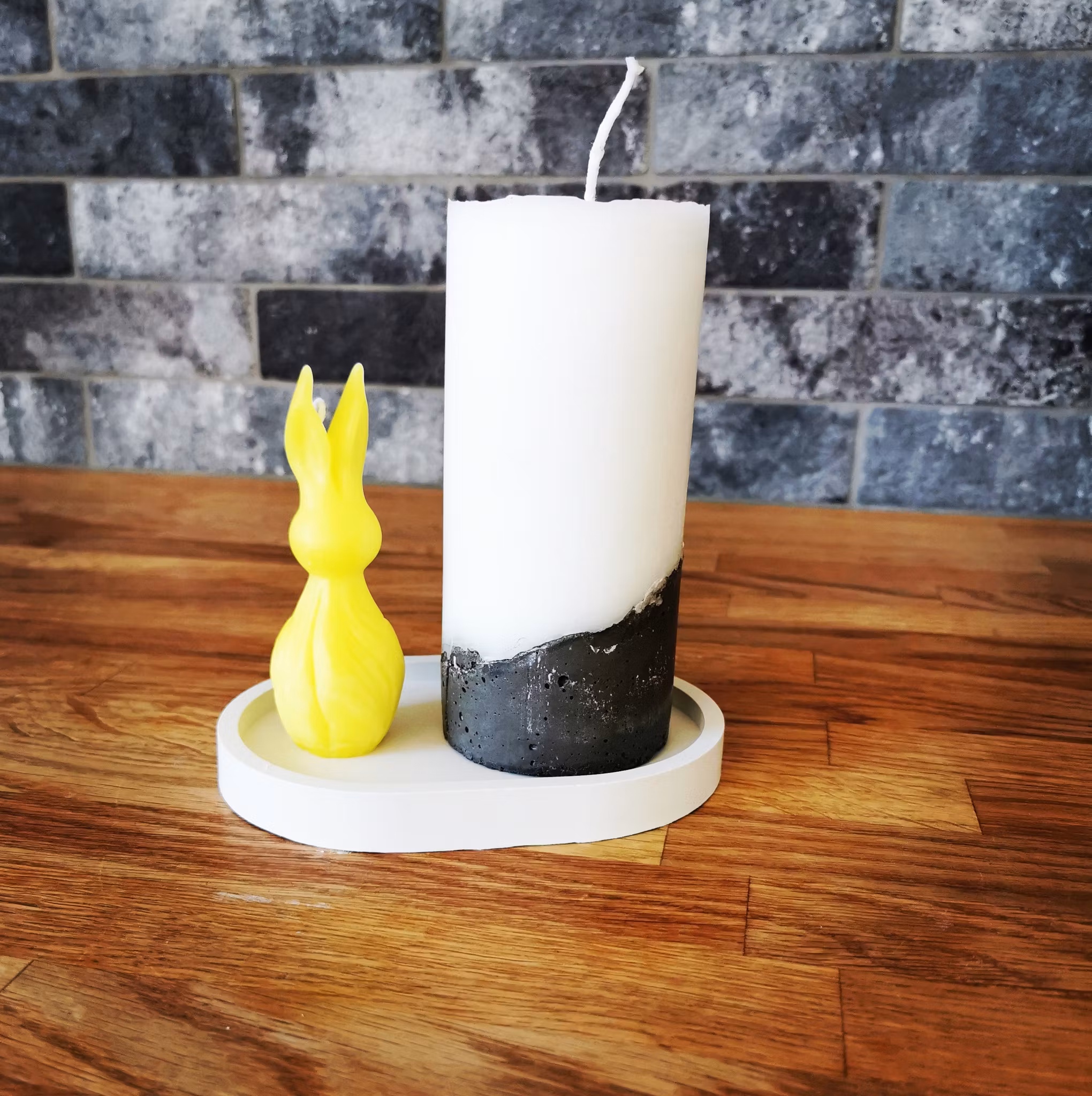 Denna stiliga ljusstake, formad som en kort oval, är handgjord av högkvalitativt gips.